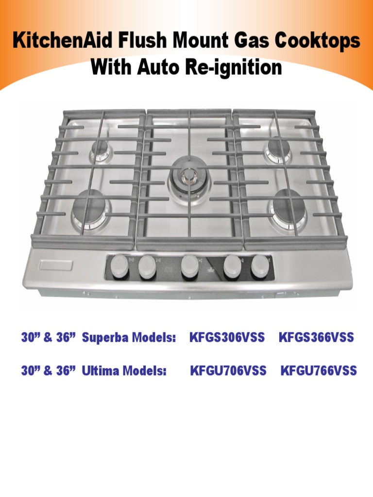 Since my kitchen is equipped with all KitchenAid appliances, I was looking for same maker for a cooktop. My wife insisted on gas cooktop as it is easier to cook than the electric version, I was searching for the right item. I came across this cooktop and read all the reviews about it and decidied to purchase the 30" version. Find KitchenAid 36 inch gas cooktops at Lowe's today. Shop gas cooktops and a variety of appliances products online at Lowes.com. KFGU766VSS Kitchenaid 36-Inch 5 Burner Gas Cooktop, Architect(R) Series II - Stainless Steel Model No: KFGU766VSS Kitchenaid 36-Inch 5