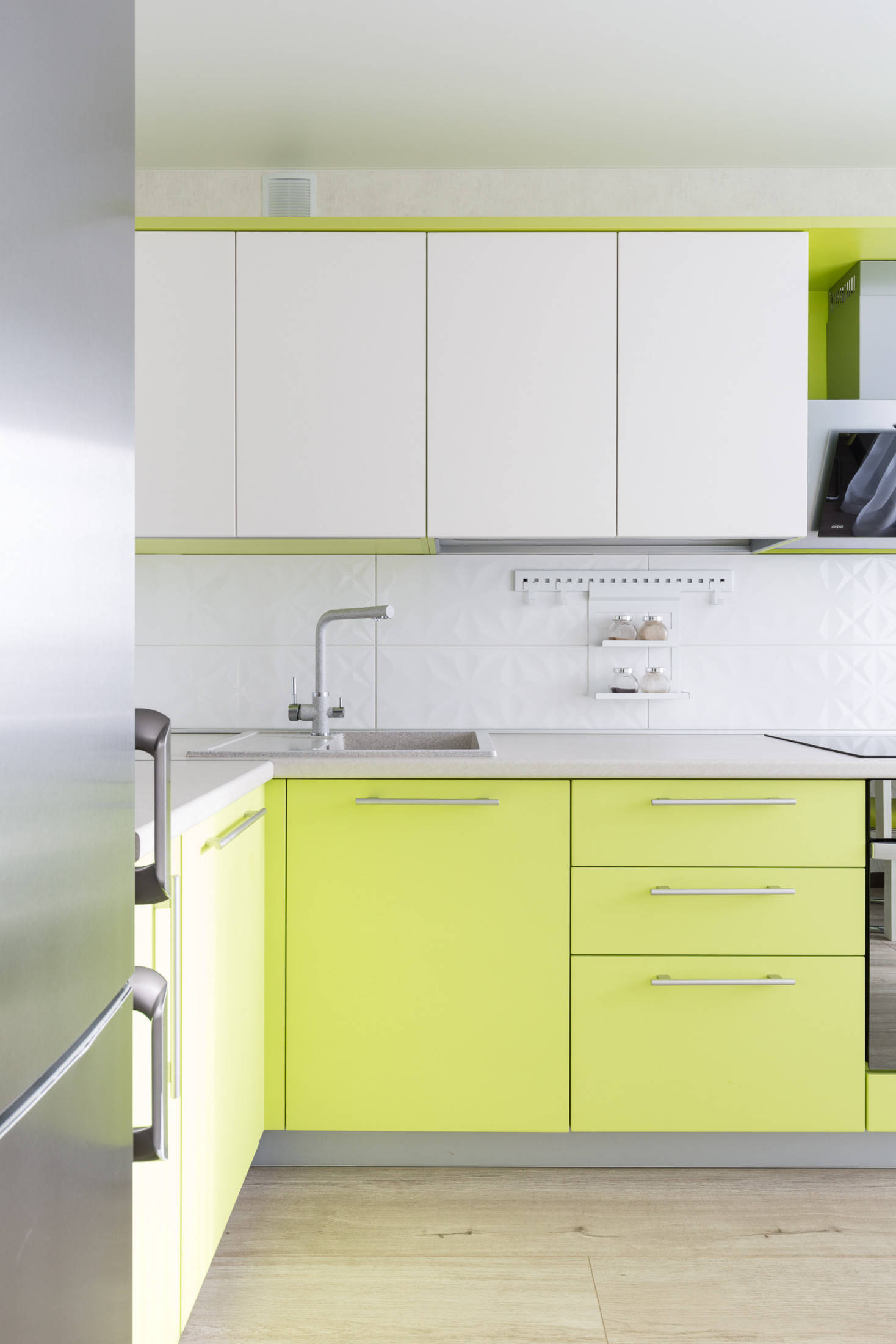 white and yellow kitchen countertops